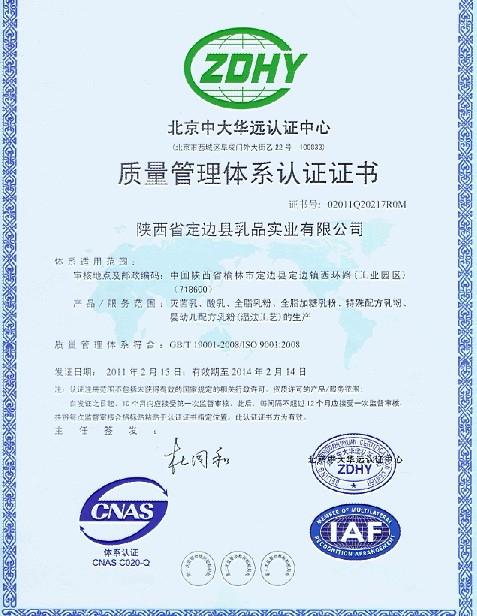 > 質量管理體系認證證書